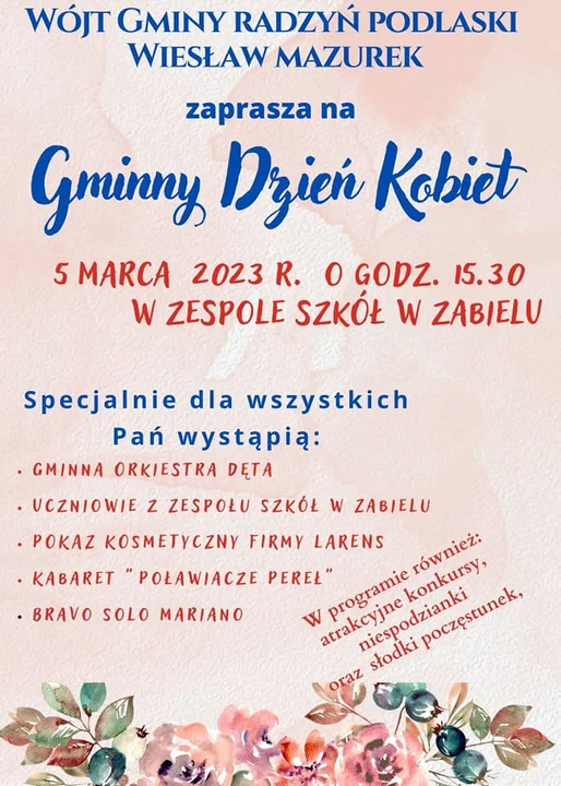 Wójt gminy Radzyń zaprasza na DZIEŃ KOBIET
