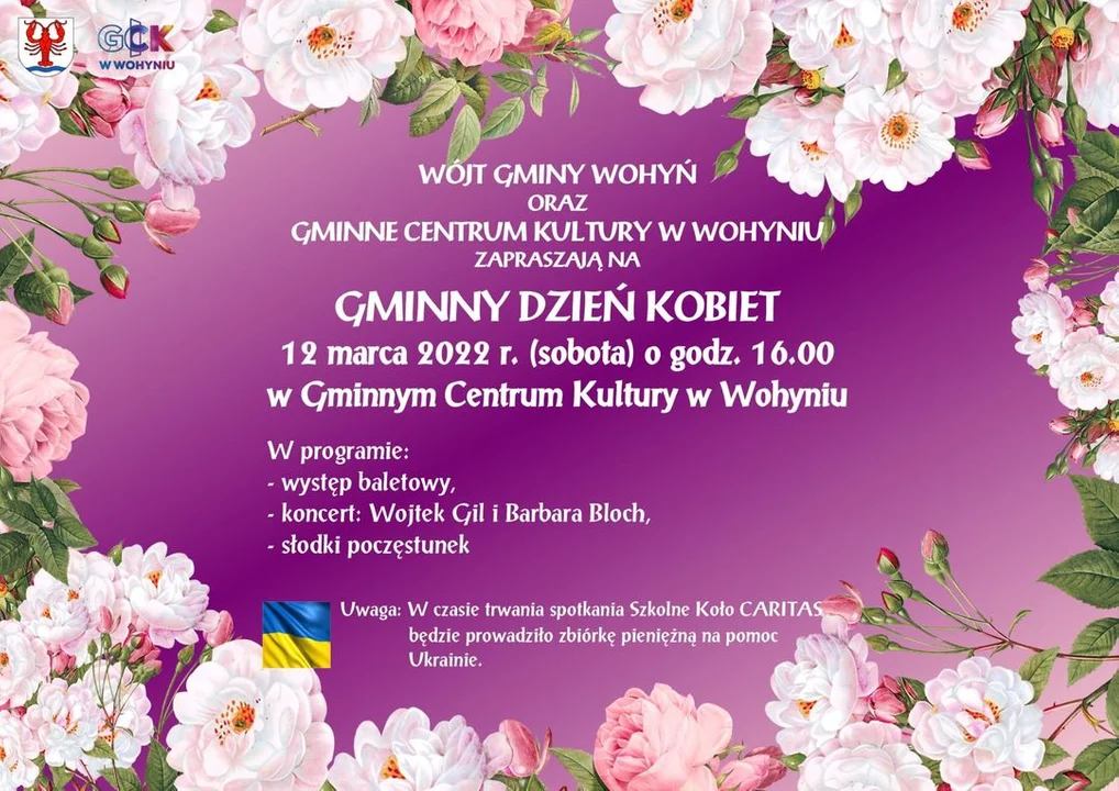 - Tegoroczny Dzień Kobiet z powodu wojny w Ukrainie będzie mniej radosny niż zwykle. Pod opieką Gminy Wohyń od kilku dni znajdują się 3 rodziny uchodźców z Ukrainy. Przekazujemy im dary, udzielamy niezbędnej pomocy, przygotowujemy kolejne miejsca do zamieszkania. Do nich w dużej części trafia ofiarowana przez Państwa pomoc. Bardzo za to wsparcie dziękuję. Mimo dramatu za naszą wschodnią granicą serdecznie zapraszam na koncert 12 marca na godz. 16.00 wszystkie Panie do Gminnego Centrum Kultury w Wohyniu. Niech to nasze spotkanie będzie kolejną okazją do wsparcia i wyrazem naszej solidarności z Ukrainą - zaprasza panie Tomasz Jurkiewicz, wójt gminy Wohyń.