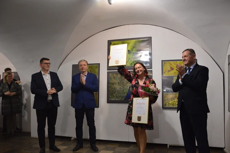 - Nie czuję się fotografikiem, ale amatorką i miłośniczą przyrody Myśląc o niej przychodzi mi do głowy słowo –pasja. To jest moja miłość. Przyroda wzbudza mój zachwyt. Każde ze zdjęć wynika z mojego zachwytu nad przyrodą. Wszystko mi w niej imponuje. Od jej wszechobecności po jej piękno, jej potęgę, dzikość, kontrasty, które się w niej znajdują. Jej delikatność, ulotność, kobiecość, boskość. Stąd tytuł wystawy – muśnięcie. Chciałam się skupić na tej delikatności i ulotności. Czy może coś być bardziej delikatnego niż skrzydła motyla ? Nić pajęcza, pawie oko ? Dla mnie to muśnięcie to jest tchnienie Boga. Jeżeli ktoś poszukuje Boga, wystarczy spojrzeć na źdźbło trawy... - mówiła Ewa Grodzka podczas otwarcia wernisażu.