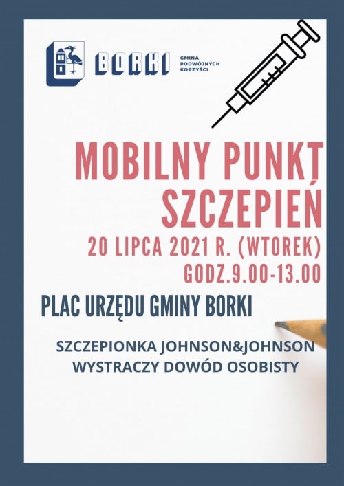 Wystarczy wziąć ze sobą dowód osobisty. Punkt szczepień będzie czynny w godzinach od 09.00 do 13.00.