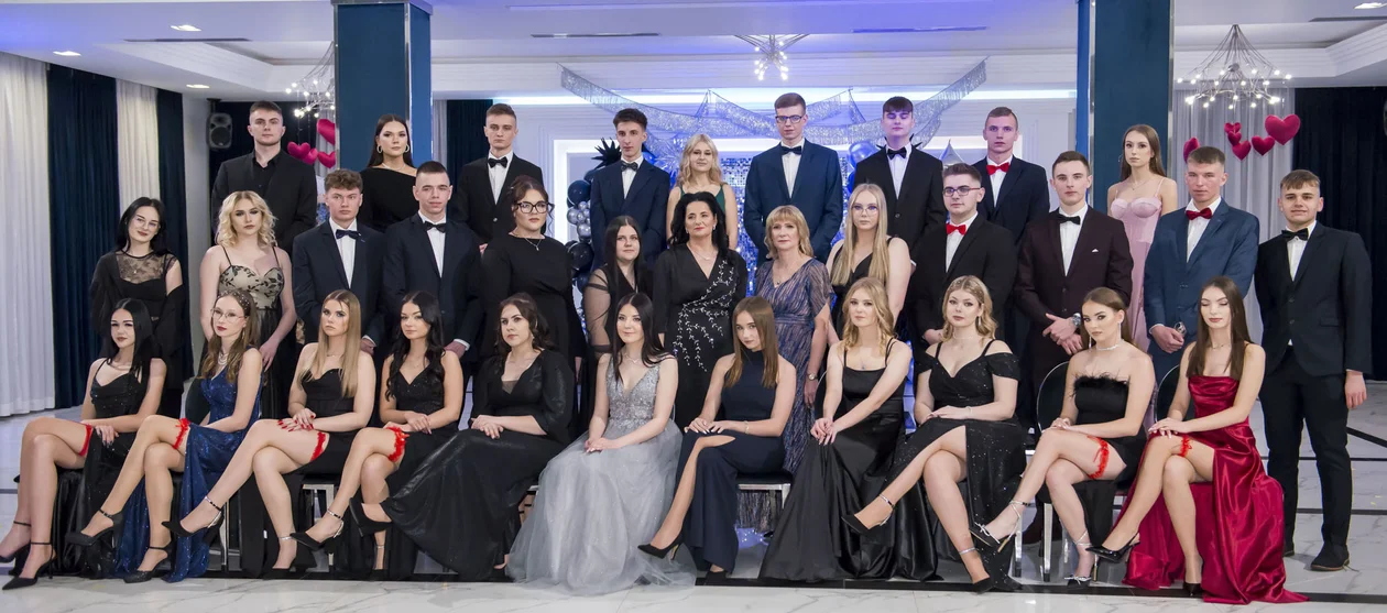Zespół Szkół Ponadpodstawowych im Jana Pawła II z Radzynia Podlaskiego- Bal Studniówkowy zdj. grupowe