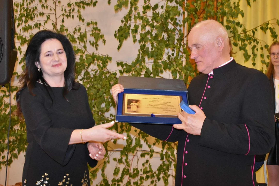 Podczas spotkania dyrektor Grażyna Dzida wręczyła ks. prał. Romanowi Wiszniewskiemu pamiątkową tabliczkę z podziękowaniami za współpracę z ZSP, a uczniowie - kosz z 45 różami - z okazji jubileuszu 45-lecia kapłaństwa. - Imię Jana Pawła, jakie nosi Zespół Szkół Ponadpodstawowych zobowiązuje – podkreślił Wicestarosta Michał Zając i dodał, że Szkoła, której organem prowadzącym jest Powiat Radzyński, bardzo dobrze wywiązuje się z tego zobowiązania, kształtując młodzież w duchu nauczania Patrona. Uroczystość zakończyła się wspólnym odśpiewaniem „Barki” - ulubionej piosenki religijnej św. Jana Pawła II.