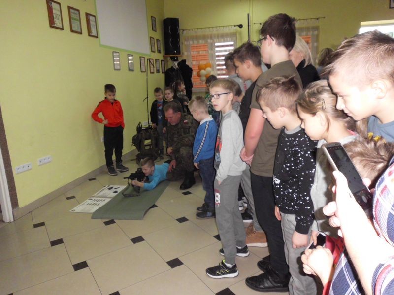Dzięki panom : ppor. Mariuszowi Baranowi, ppor. Łukaszowi Biegajło, st. chor. Marcinowi Matejkowi, szer. Markowi Kwoczko oraz st. szer. Arturowi Izdebskiemu dzieci odwiedzające wystawę miały możliwość nie tylko pooglądać ale także przymierzyć, potrzymać czy popatrzeć przez lornetkę noktowizyjną. Chłopcom szczególnie podobała się możliwość potrzymania karabinu i wykonanie postawy strzeleckiej – leżącej. Omówiona została budowa broni.