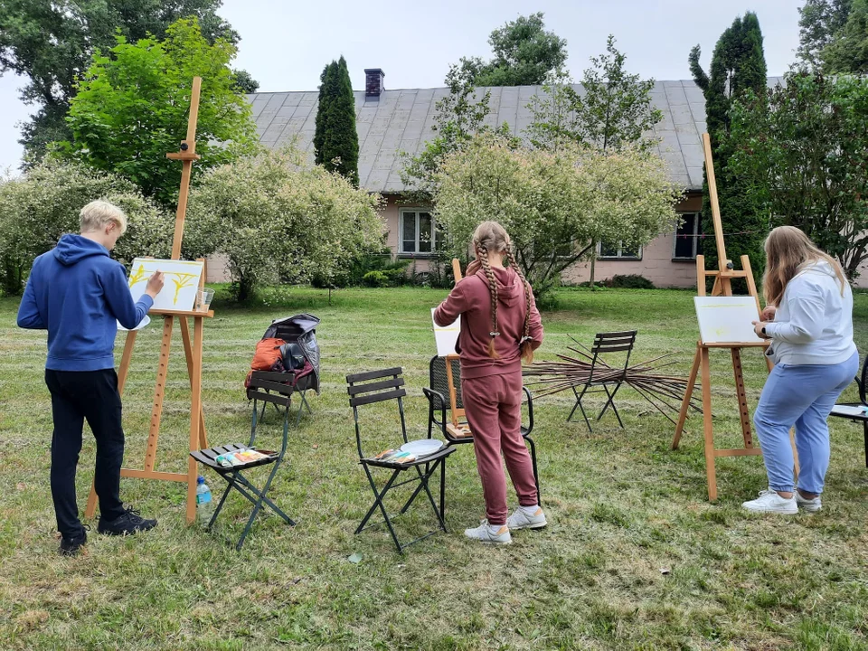 Uczestnicy wydarzenia powrócili na łono natury, by przy pięknej, bardzo sprzyjającej aurze poprowadzić warsztaty plastyczne w plenerze. A spotkało się grono młodych miłośników sztuki i dwa pokolenia instruktorów, wychowanków norwidowskiego liceum sztuk pięknych - Oliwia Wierzchowska oraz Sławomir Żyłka.