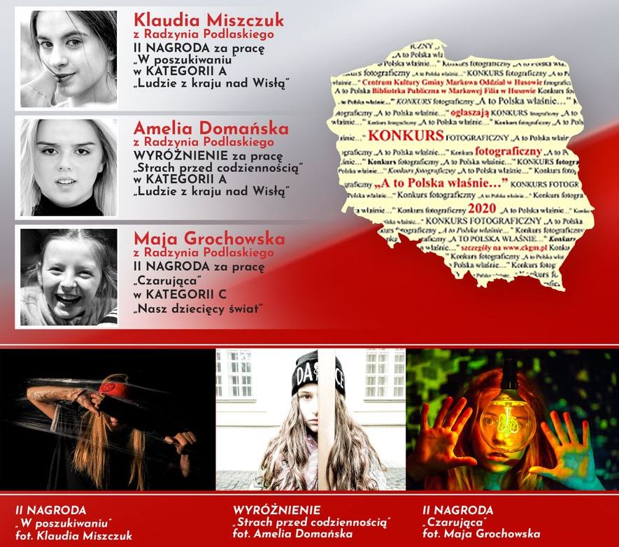 Uczennica Szkoły Podstawowej nr 1 w Radzyniu Podlaskim - Majka Grochowskiej z Klubu Miłośników Fotografii Zoomik otrzymała wyróżnienie w V edycji Ogólnopolskiego Konkursu Fotograficznego "Najciekawsze zakątki naszej Ojczyzny" za zdjęcie pt.: "Zacieniona historia Potockich"
