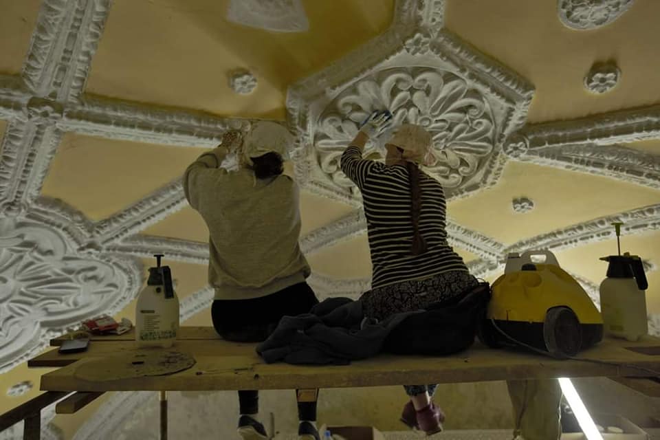 Prace obejmują badania oraz rekonstrukcje kolorystyczne sklepienia w kaplicy rodziny Mniszchów, nawie głównej i prezbiterium.