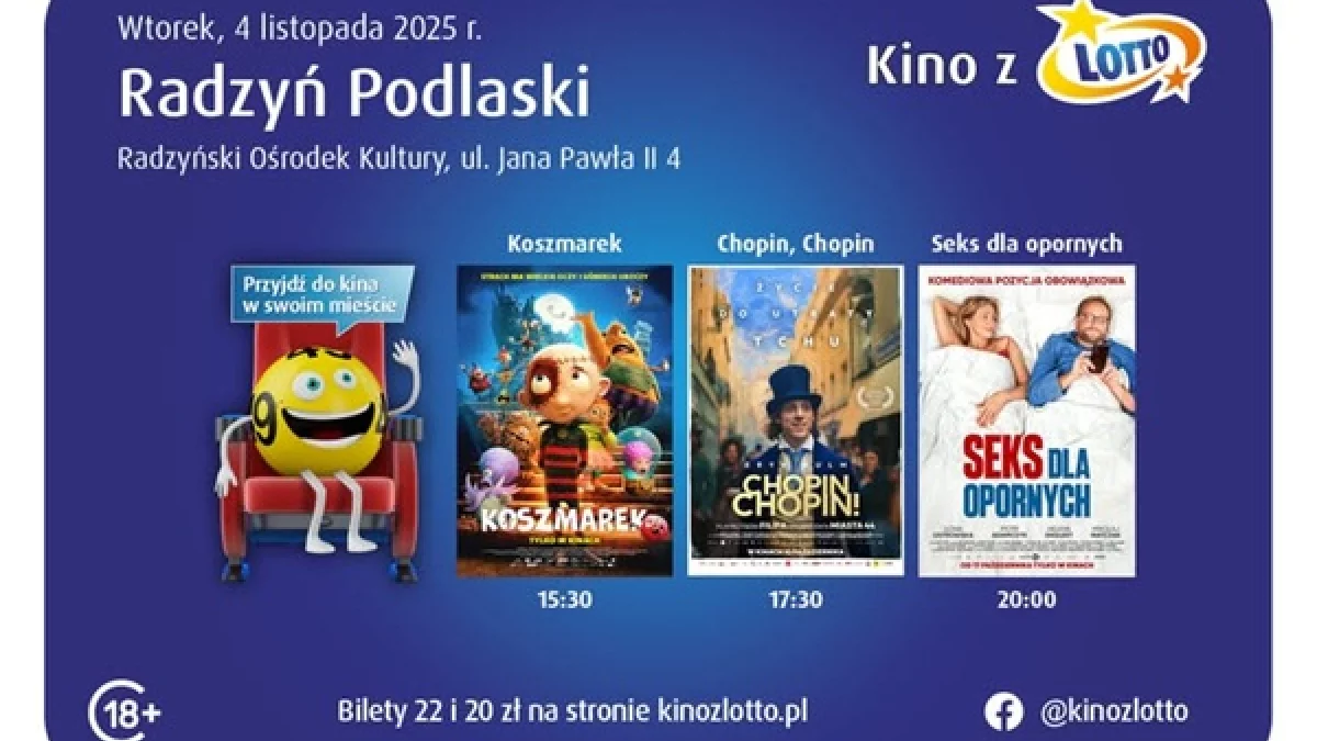 🎟 Pełna trasa Kina z LOTTO oraz repertuar dostępne są na stronie: https://kinozlotto.pl/trasa_kina/szczegoly/1103
