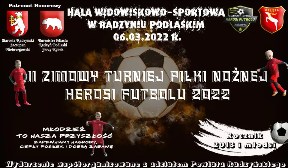 Sport6 marca na Hali Widowiskowo-Sportowej w Radzyniu Podlaskim odbędzie się II Zimowy Turniej Piłki Nożnej - Herosi Futbolu 2022. Turniej jest organizowany dla dzieci z rocznika 2013 i młodszych, a młodzi adepci futbolu pod opieką trenera Mateusza Chyły wystąpią w roli gospodarza.