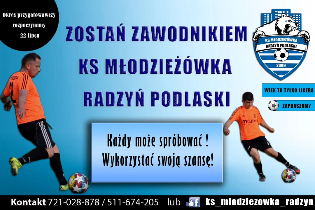 Jeżeli jesteś z Radzynia lub okolic i chcesz spróbować swoich sił w dobrze zapowiadającej się lokalnej drużynie klasy okręgowej, zapraszamy do kontaktu przez naszego fanpage oraz numery telefonów zamieszczone na plakacie.