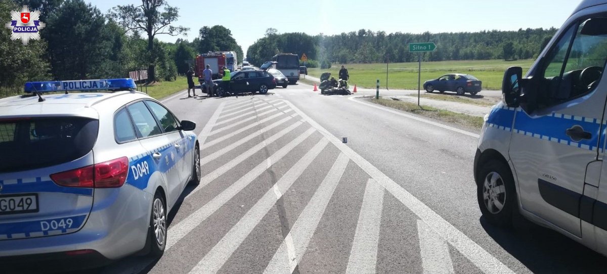Do zdarzenia doszło wczoraj kilka minut po godz. 13:00 na drodze K-19 w miejscowości Sitno gm. Borki. Kierujący samochodem marki BMW 525, 32-letni mieszkaniec Radzynia Podlaskiego wykonując manewr skrętu w lewo z drogi podporządkowanej na drogę główną nie udzielił pierwszeństwa przejazdu 19-latkowi, kierującego motocyklem m-ki BMW w wyniku czego doprowadził do zderzenia pojazdów. Motocyklem kierował mieszkaniec gm. Kąkolewnica.