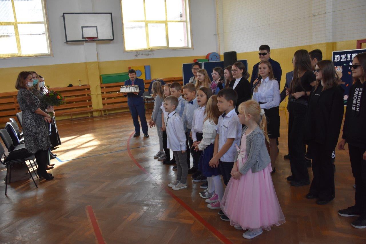 Na koniec akademii zabrzmiało gromkie 100 lat, zaś na ręce Dyrektora Szkoły Mirosława Chudziaka, uczniowie przekazali okazały tort.