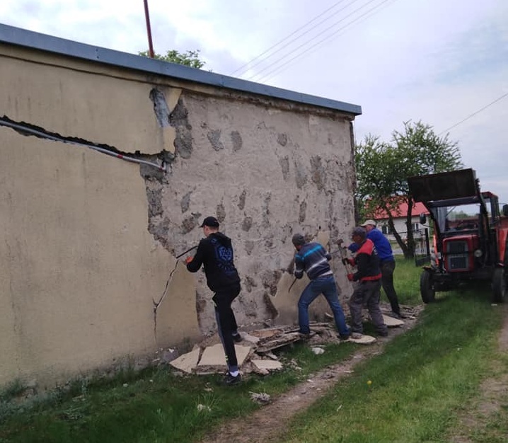 W pracach demontażu starego ocieplenia budynku uczestniczyli: