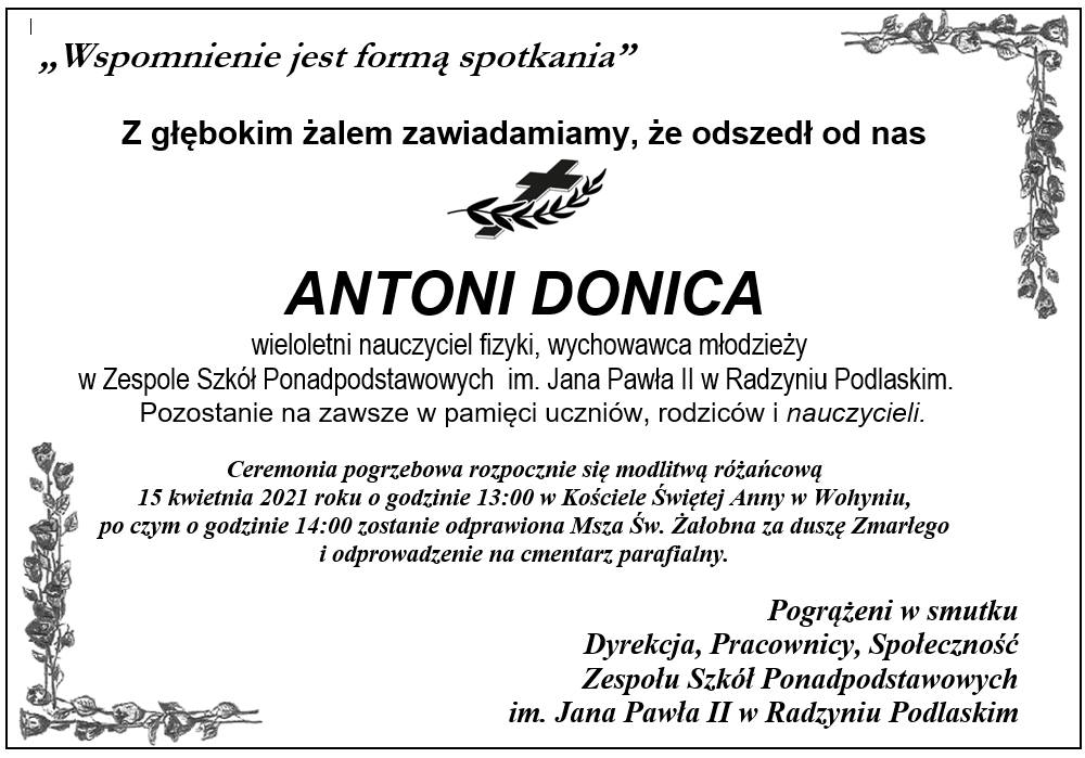 Jutro ostatnie pożegnanie nauczyciela ZSP Antoniego Donicy
