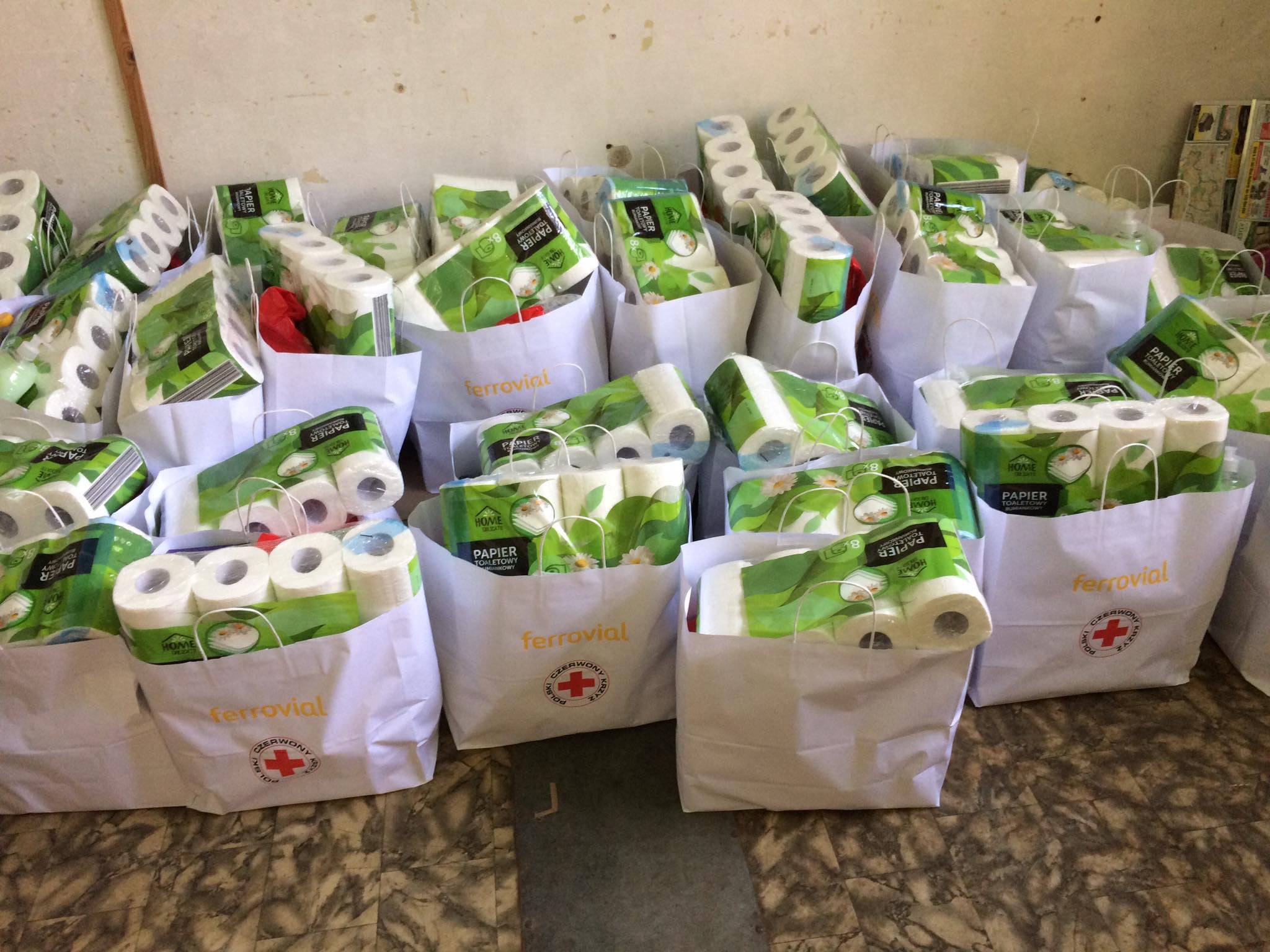 W paczkach znalazły się produkty spożywcze, środki czystości oraz niezbędne w związku z zagrożeniem epidemicznym przyłbice i jednorazowe rękawiczki.