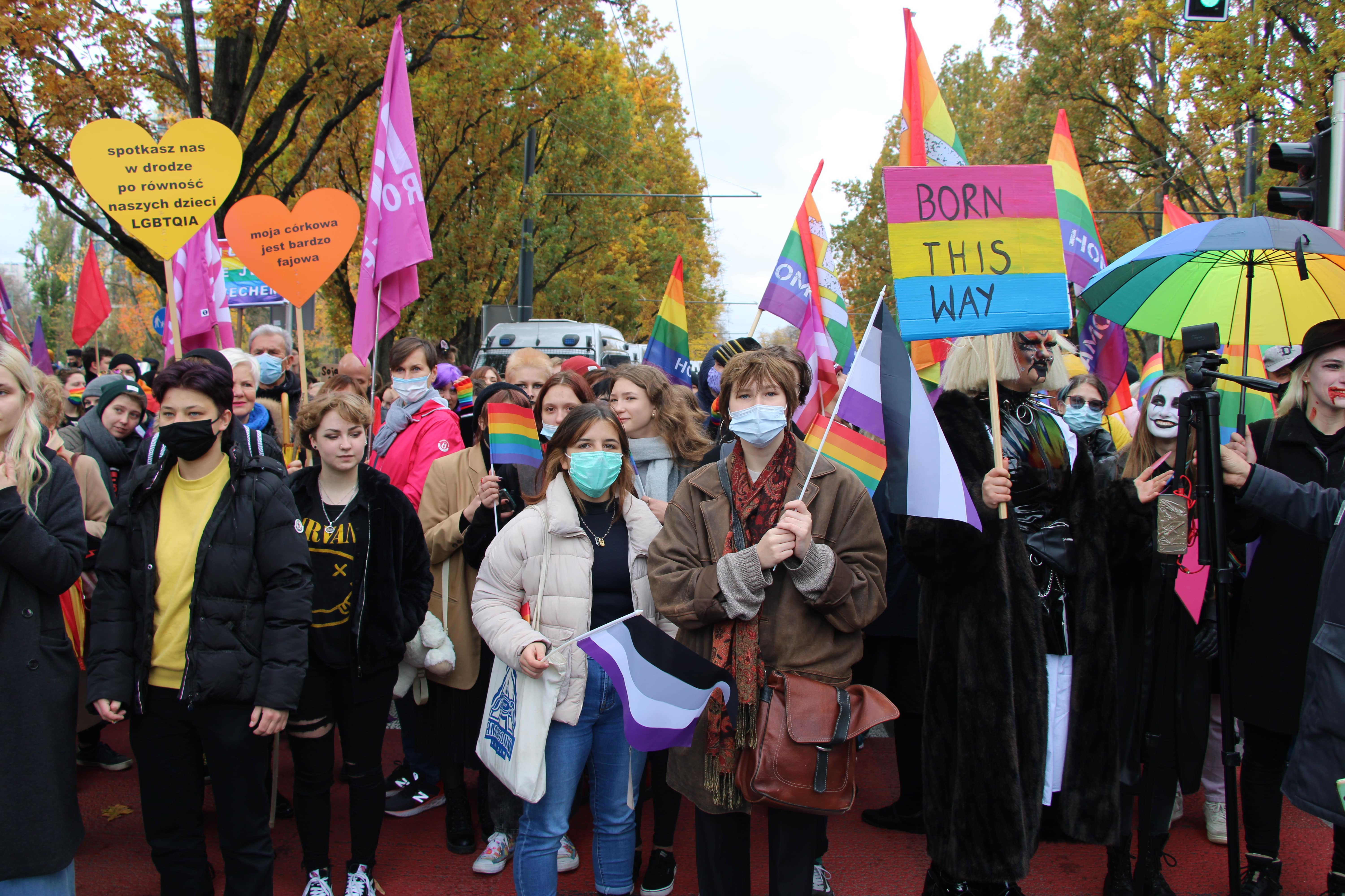 Uczestnicy skandowali m.in. "Miłość, równość, akceptacja!" i "Dziewczyna, dziewczyna, normalna rodzina!".