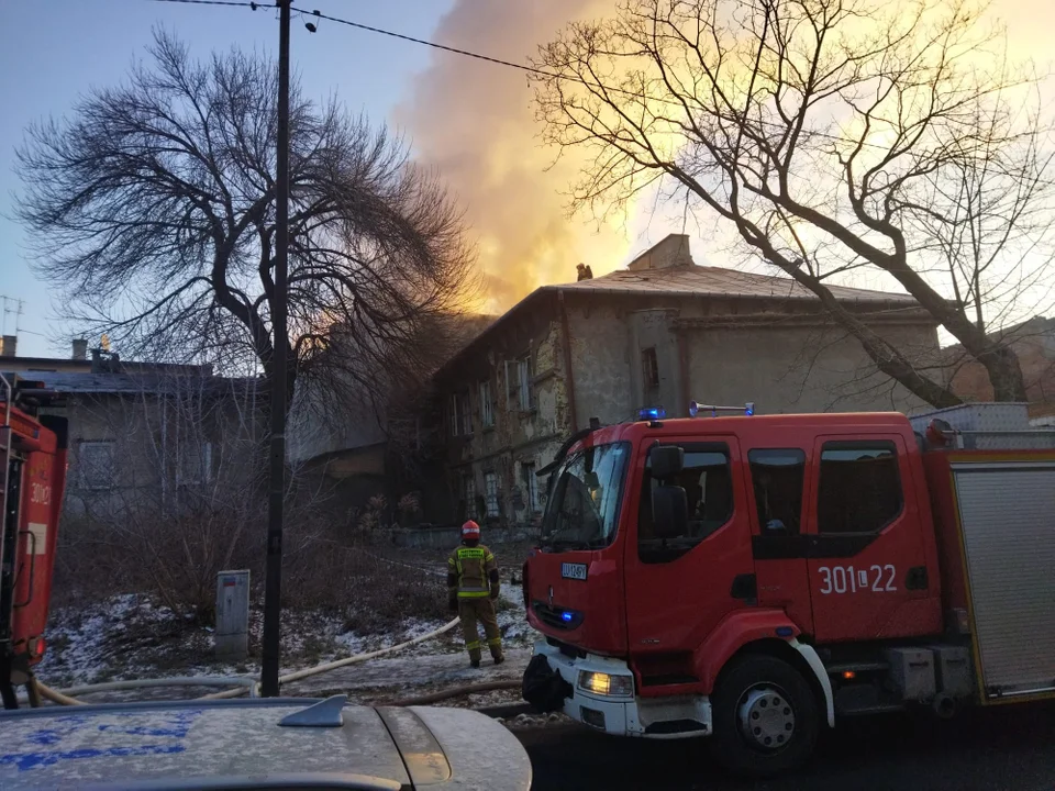 Ogień pojawił się na poddaszu. Akcja gaśnicza jest utrudniona z powodu mrozu oraz zamurowanych okien w budynku.